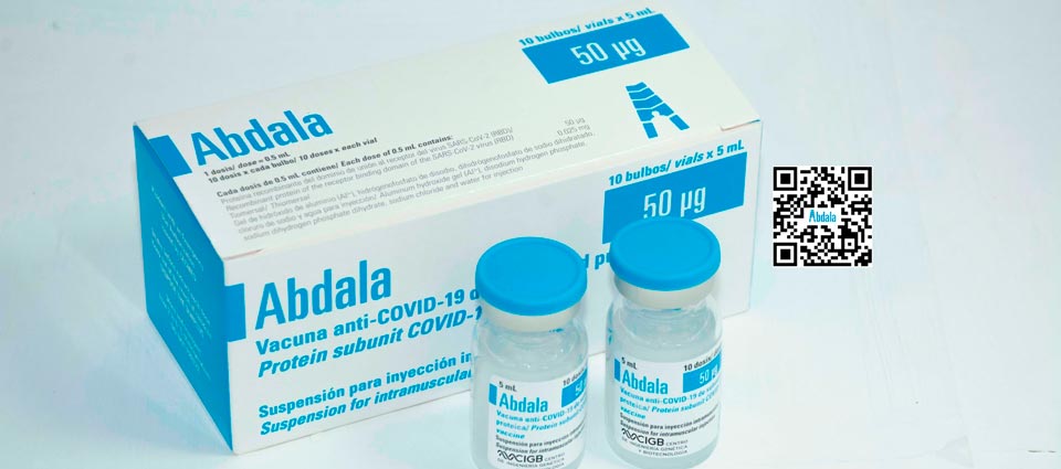 Abdala: primera vacuna anti-COVID-19 de América Latina Acerca de Abdala Mambisa, candidato vacunal anti-COVID-19 Acerca de Mambisa Abdala es 100 % eficaz en la prevención de la enfermedad severa y la muerte por COVID-19 Acerca de Abdala Investigamos, producimos y comercializamos productos biotecnológicos y farmacéuticos ¿Quiénes somos? Trabajamos con responsabilidad social y en armonía con el medio ambiente ¿Quiénes somos? Ofrecemos novedosas aplicaciones biotecnológicas para los sectores biomédico, veterinario, agropecuario, acuícola e industrial ¿Quiénes somos?